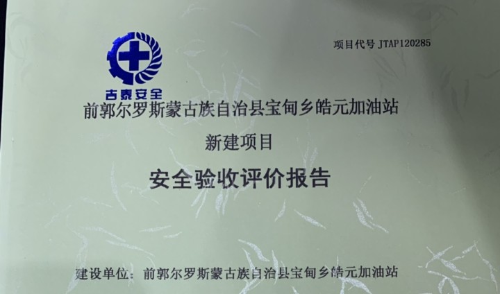 JTAP120285--前郭爾羅斯蒙古族自治縣寶甸鄉(xiāng)皓元加油站新建項(xiàng)目安全驗(yàn)收評(píng)...