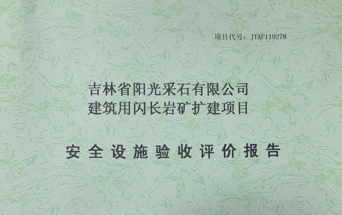 JTAP119278--吉林省陽光采石有限公司建筑用閃長巖擴(kuò)建項(xiàng)目安全設(shè)施驗(yàn)收評(píng)...