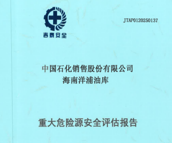 JTAP0120250137-中國石化銷售股份有限公司海南洋浦油庫重大危險(xiǎn)源評估