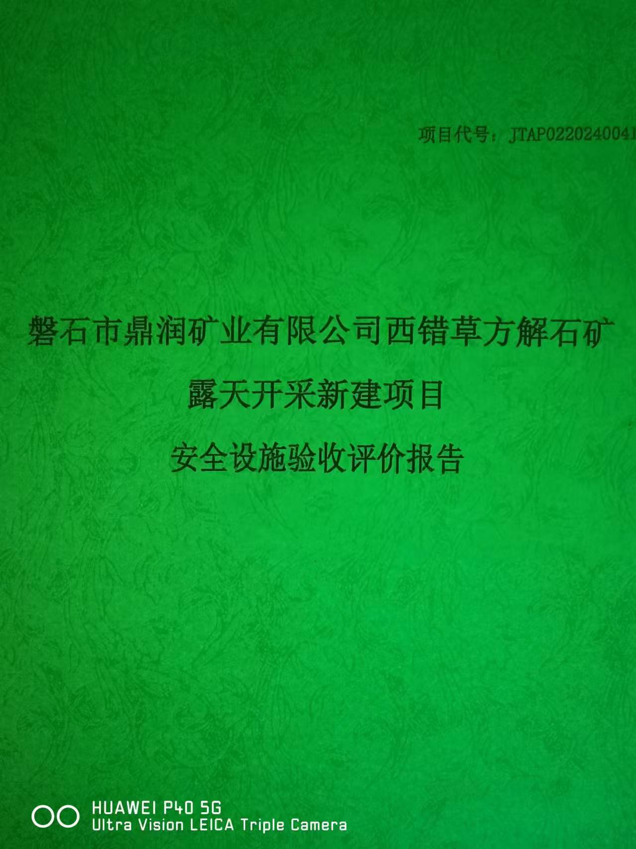 JTAP0220240041-磐石市鼎潤礦業(yè)有限公司西錯草方解石礦新建項(xiàng)目安全設(shè)...