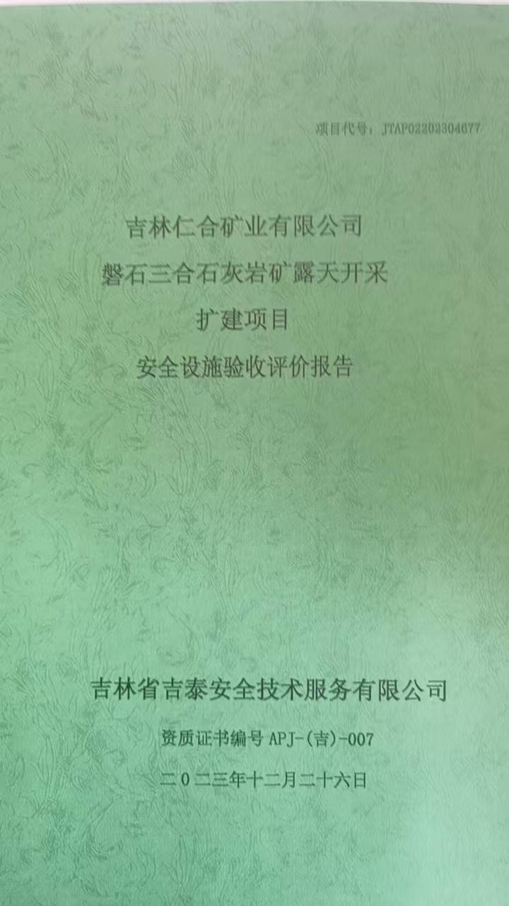 JTAP0220230677-吉林仁合礦業(yè)有限公司磐石三合石灰?guī)r礦安全設(shè)施驗(yàn)收評...