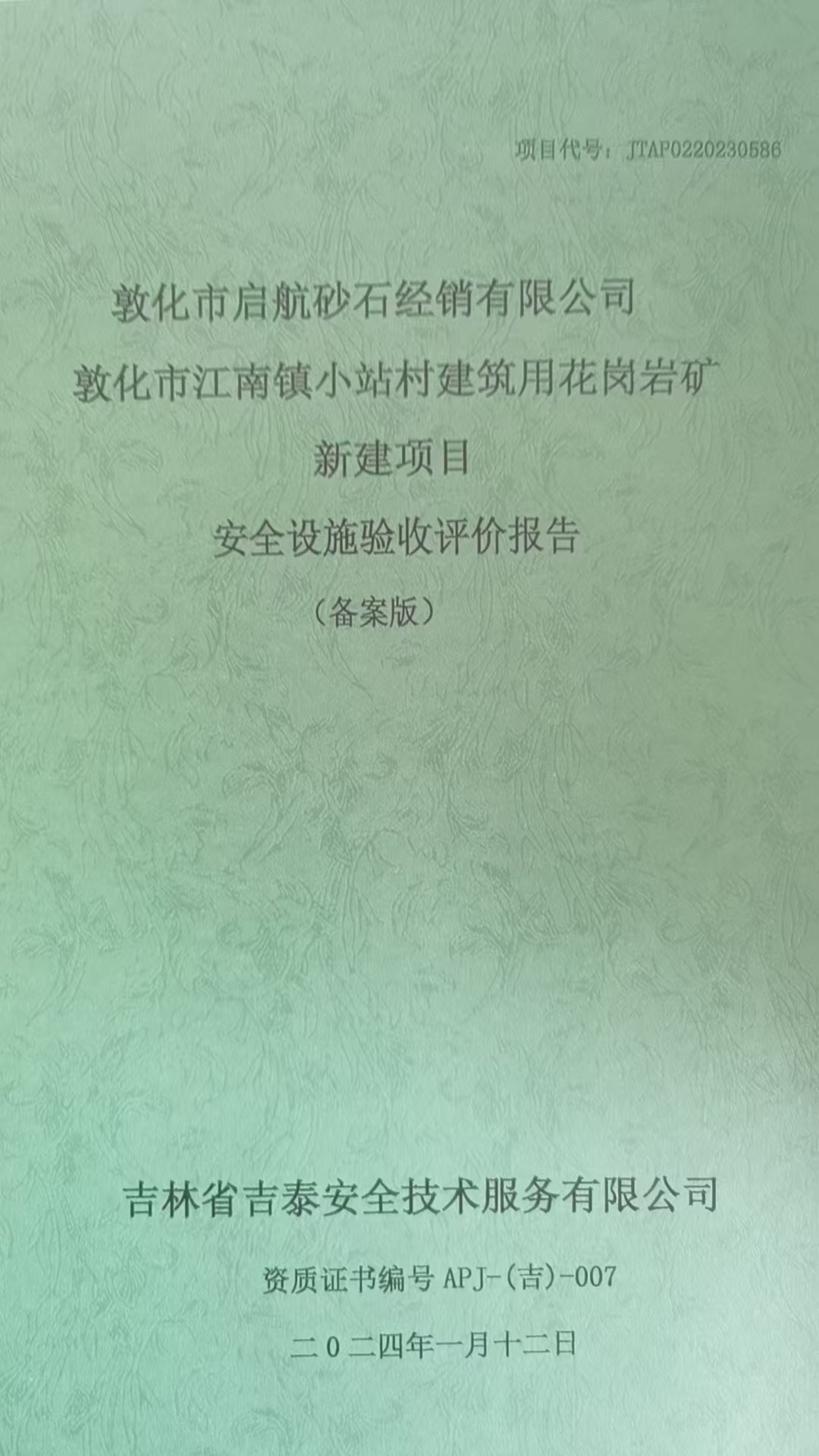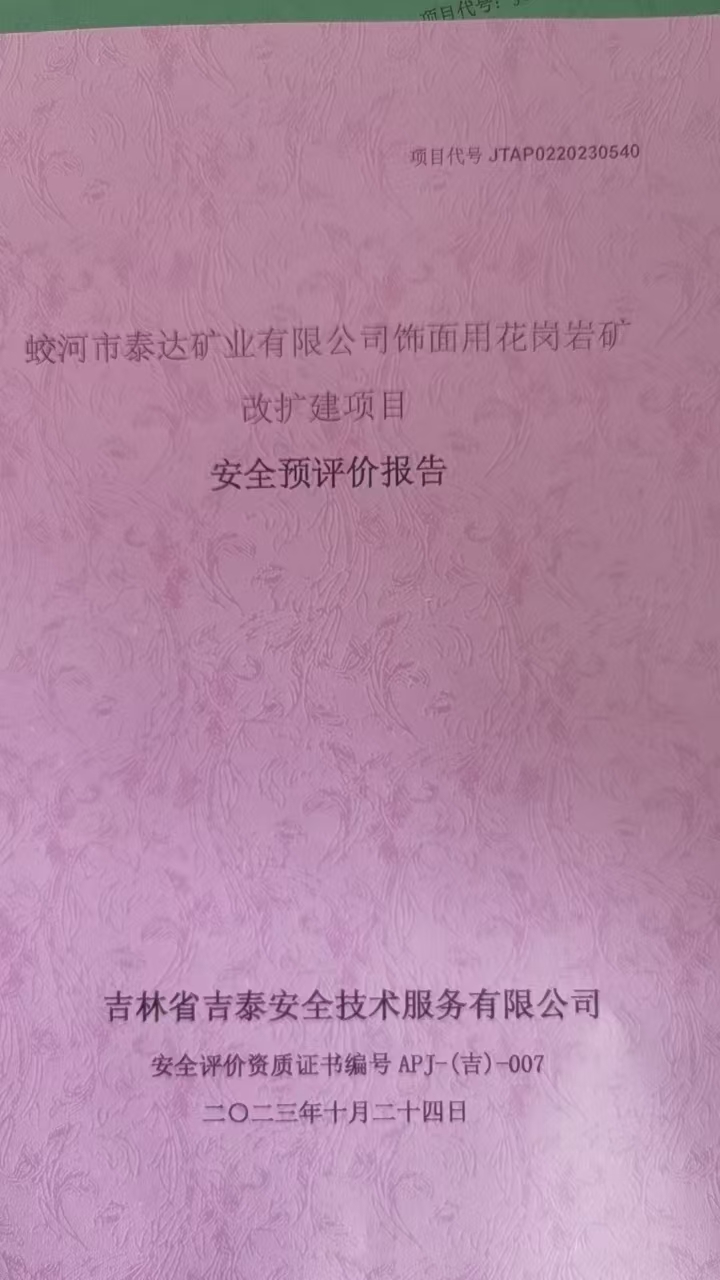 JTAP0220230540-蛟河市泰達(dá)礦業(yè)有限公司飾面用花崗巖礦擴(kuò)建項(xiàng)目安全預(yù)...